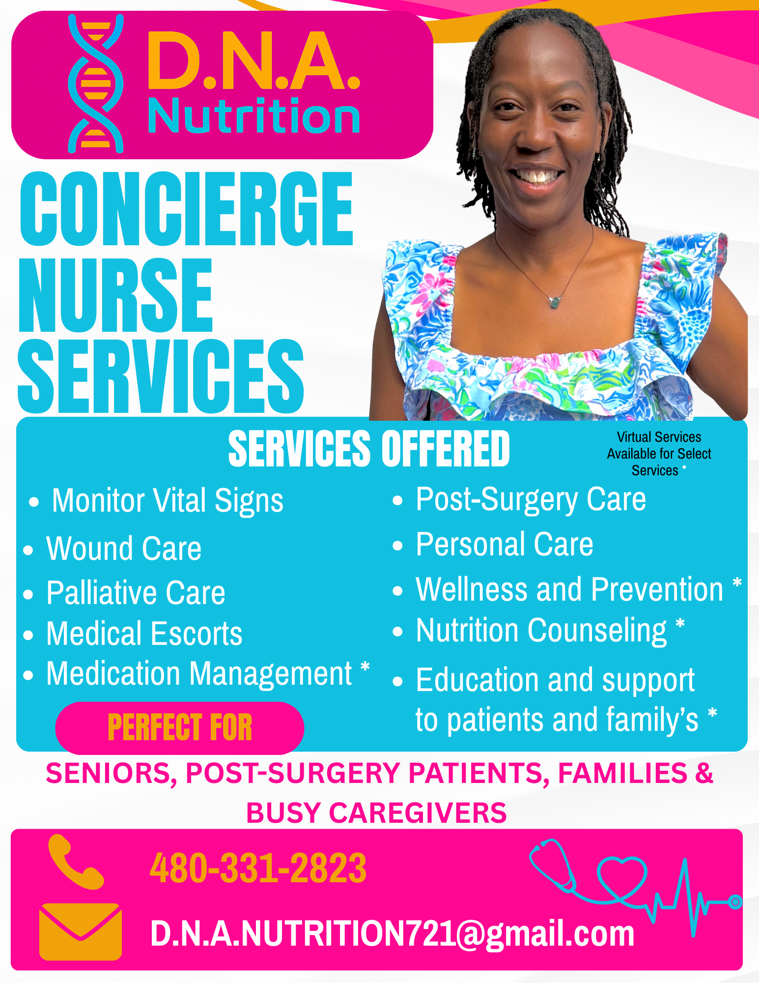 Your health, on your terms. Personalized nursing care, delivered to you. Our nurse concierge is a registered nurse who provides personalized care when and where it matters the most, typically in your home or other private setting. Services include health assessments, medication management, post-operative care, chronic disease management, and much more. This premium service differs from traditional care by offering warming attentive care for life's most challenging seasons.